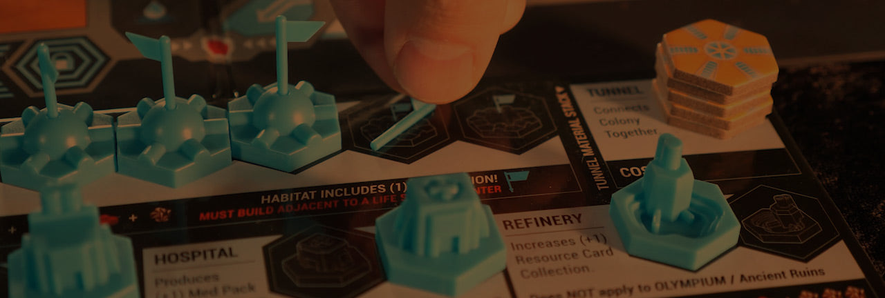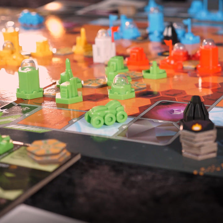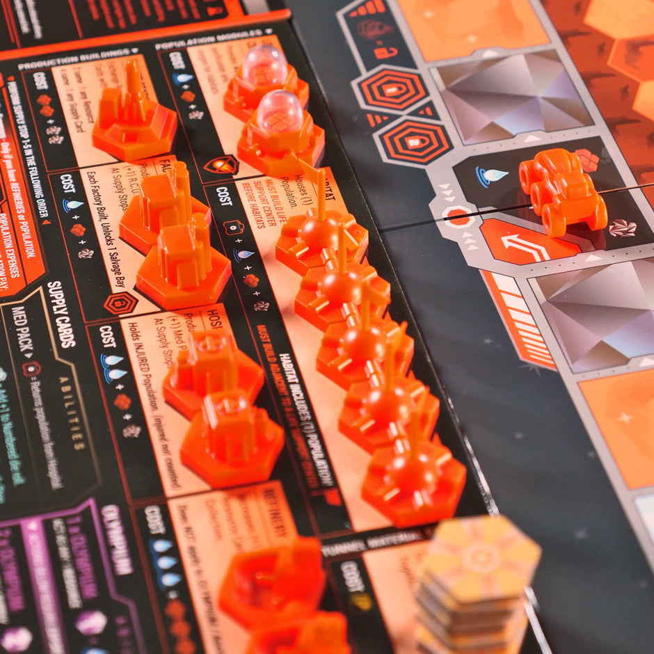 Command two separate teams within your faction each turn. Direct your construction team to build and grow your colony. Guide your exploration team to discover and excavate useful assets to keep your colony functioning.